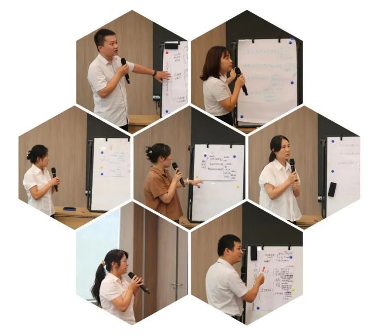 “整合內(nèi)容”是課程開發(fā)的關(guān)鍵環(huán)節(jié)。采用內(nèi)部萃取、外部借鑒的方法高效生成內(nèi)容,其中外部借鑒需要根據(jù)培訓(xùn)需求選擇直接借鑒還是改良借鑒。關(guān)于框架的搭建,老師通過課堂演練讓學(xué)員們設(shè)計了自己課程的四級框架(名、章、節(jié)、點),同時也分享講解了認(rèn)知線、流程線、要素線、場景線、時間線五種課程結(jié)構(gòu)的設(shè)計思路。最后是教學(xué)目標(biāo)的設(shè)定,重點是現(xiàn)場能實現(xiàn)和檢驗,濃縮成一句話就是:學(xué)員在培訓(xùn)結(jié)束后可以達(dá)到什么樣的成果。